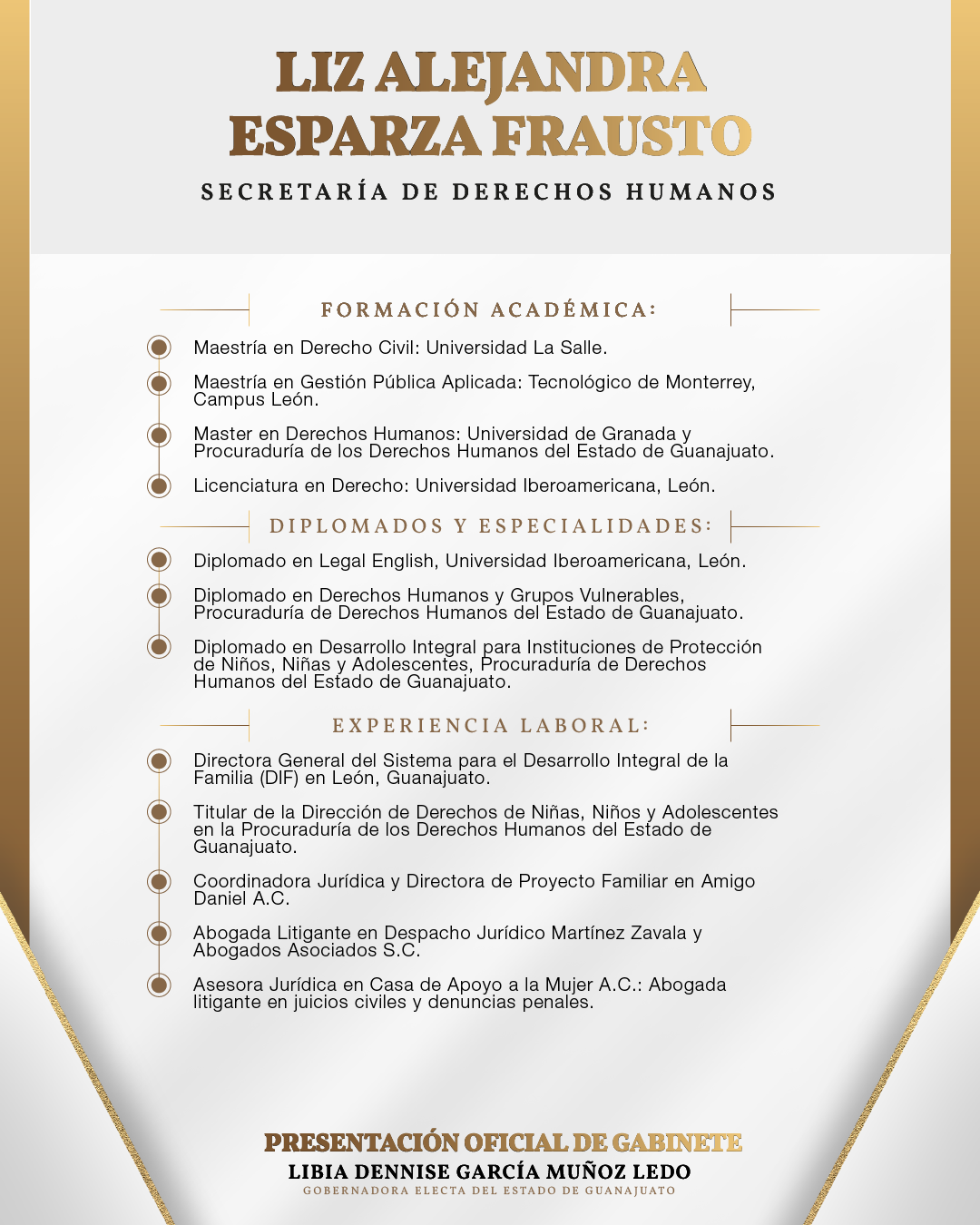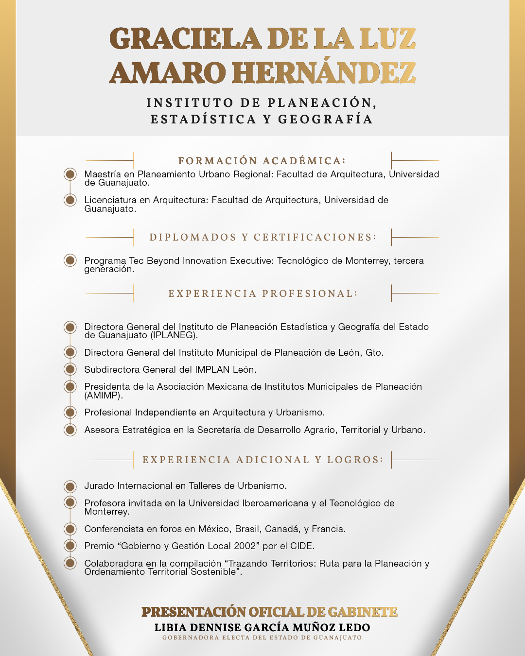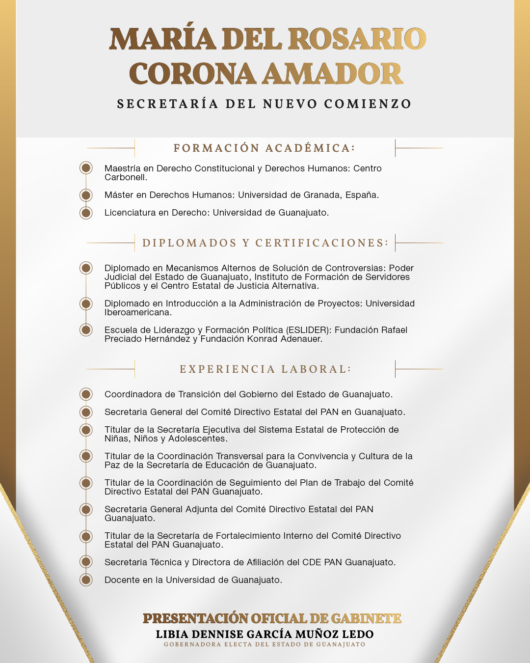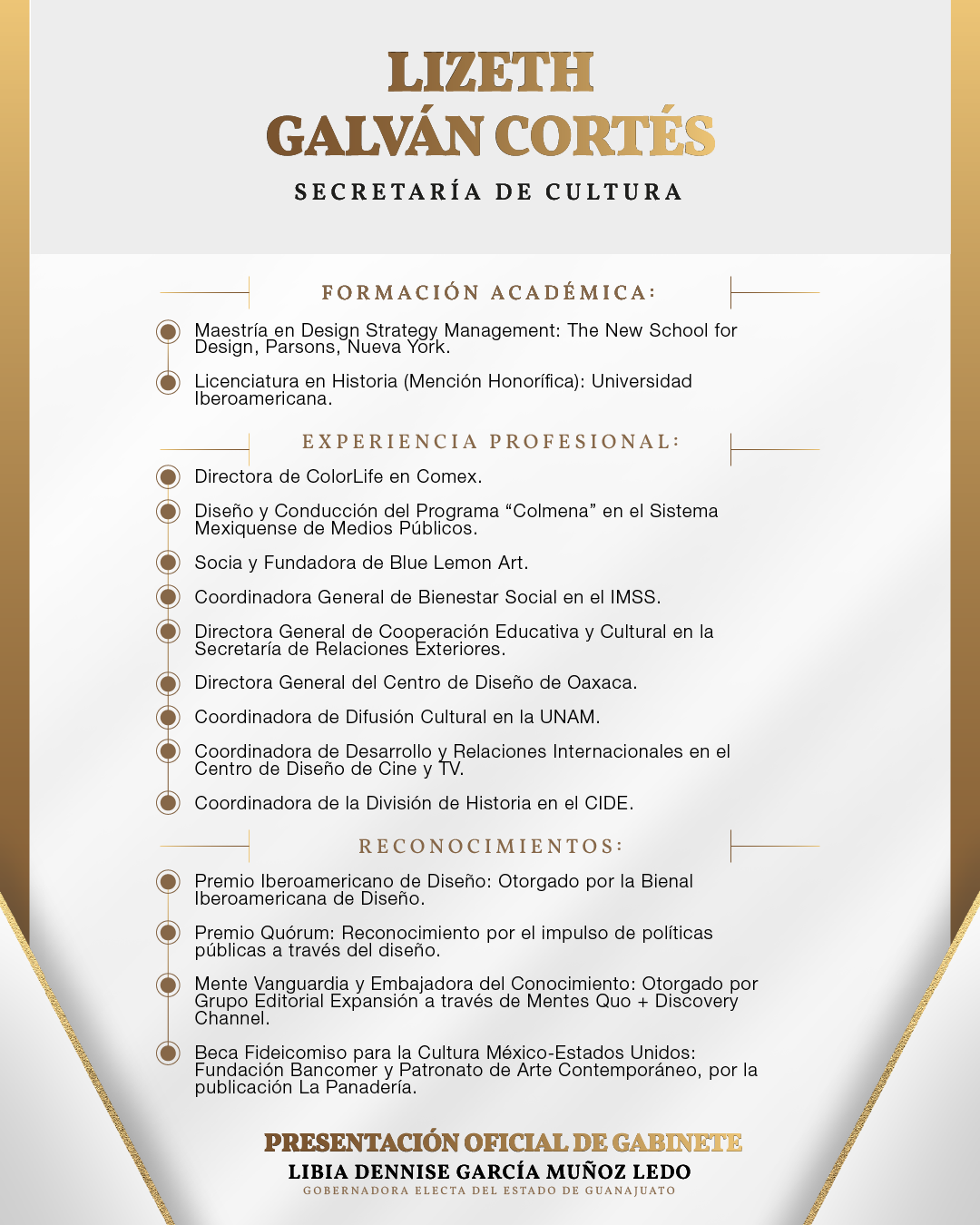 Nos enorgullece presentar a quienes formarán parte del gabinete, un equipo diverso y comprometido con el bienestar de todas y todos. Con esfuerzo compartido y trabajo conjunto, haremos realidad los sueños y proyectos que mejorarán la calidad de vida de nuestra comunidad.