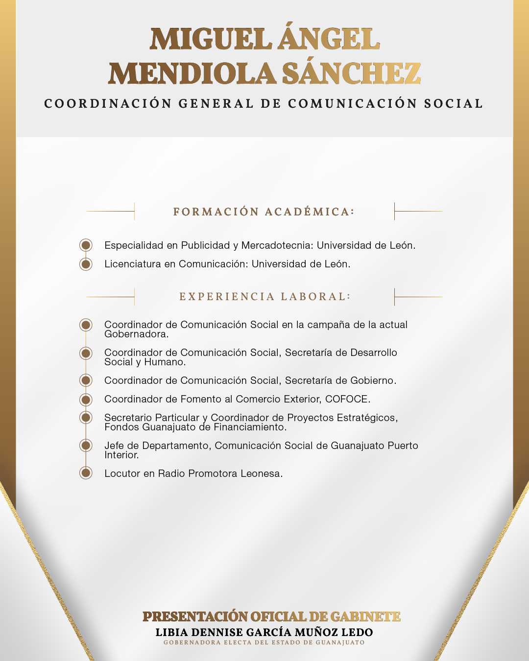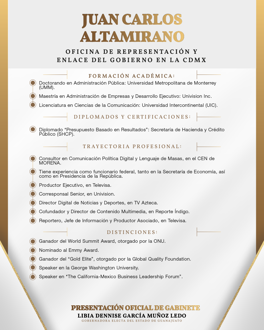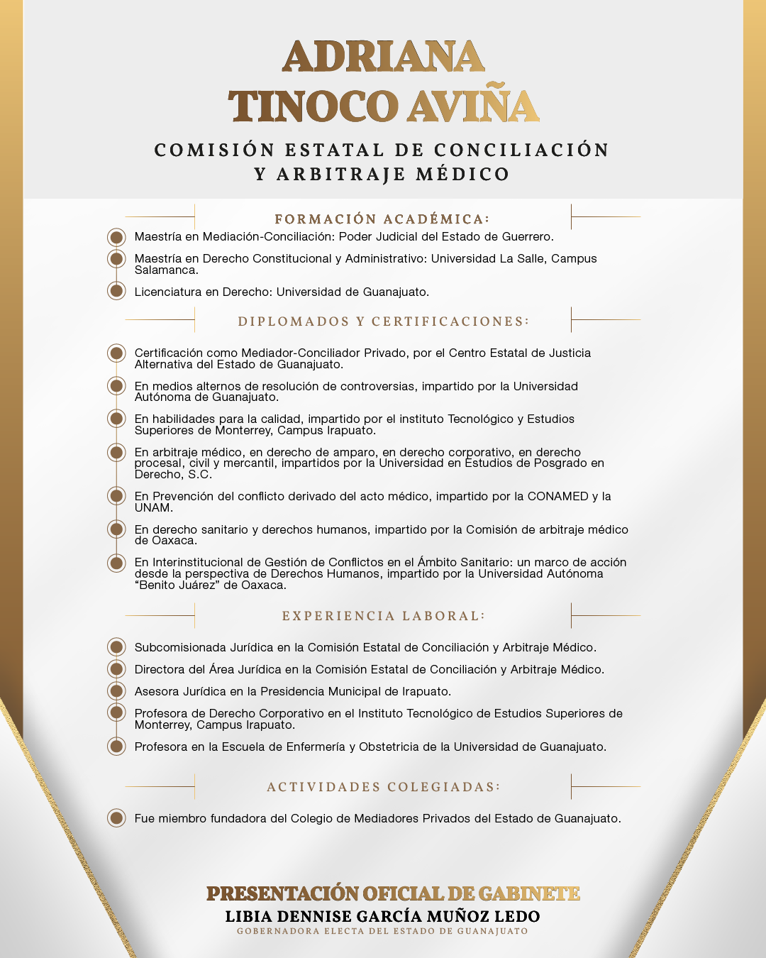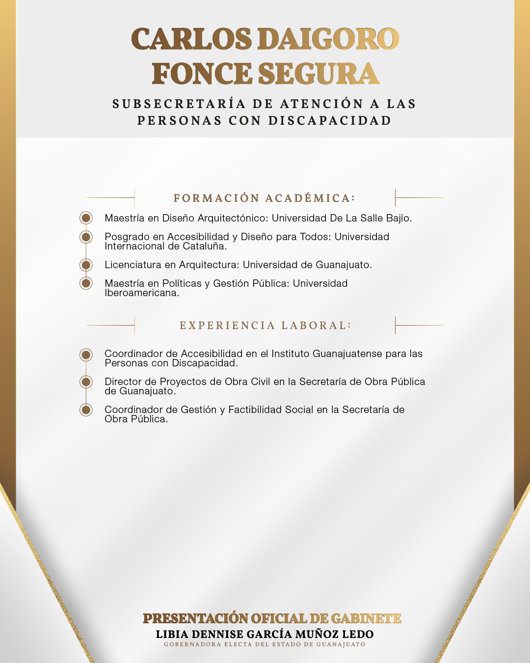 Nos enorgullece presentar a quienes formarán parte del gabinete, un equipo diverso y comprometido con el bienestar de todas y todos. Con esfuerzo compartido y trabajo conjunto, haremos realidad los sueños y proyectos que mejorarán la calidad de vida de nuestra comunidad.