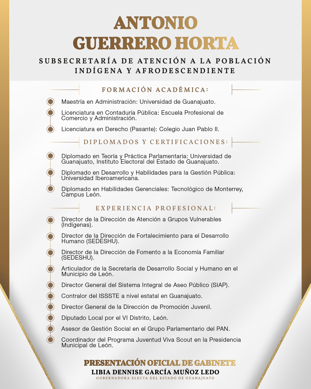 Nos enorgullece presentar a quienes formarán parte del gabinete, un equipo diverso y comprometido con el bienestar de todas y todos. Con esfuerzo compartido y trabajo conjunto, haremos realidad los sueños y proyectos que mejorarán la calidad de vida de nuestra comunidad.